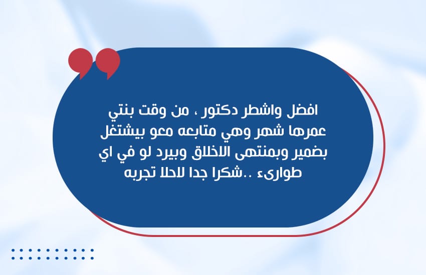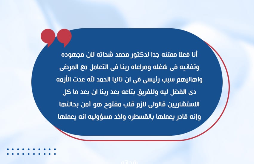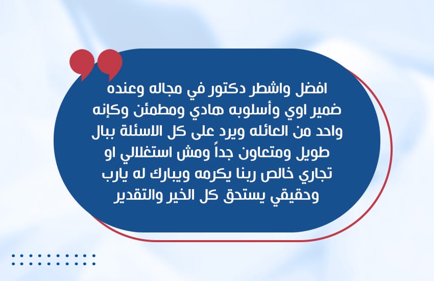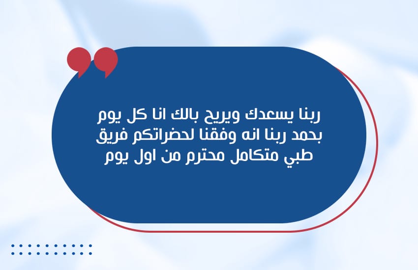 الرعاية المتكاملة : رعاية أثناء رحلة العلاج ومتابعة فيما بعد رحلة العلاج والرد المباشر علي كافة الاستفسارات